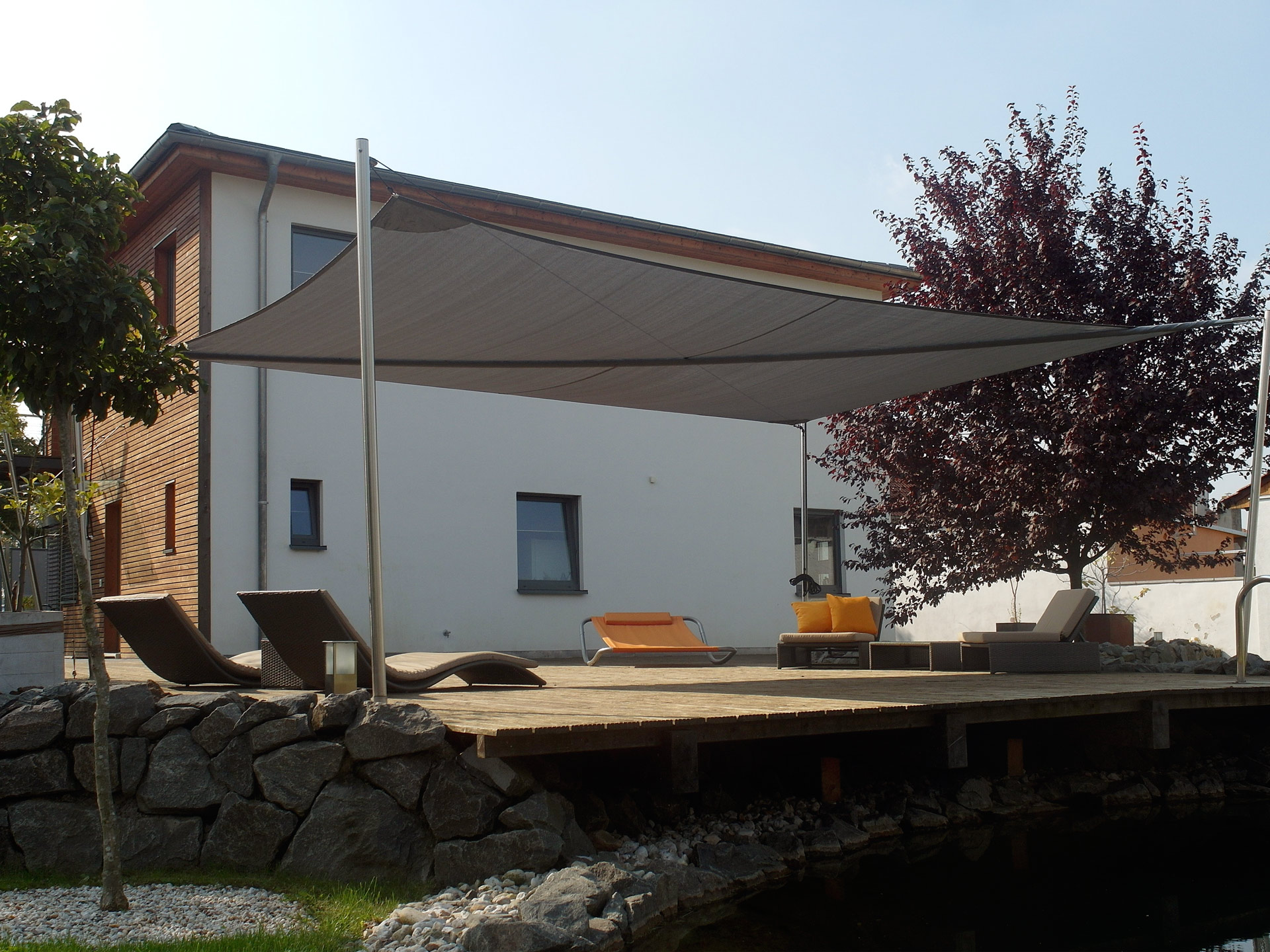 Ob freistehende Sonnensegelanlagen oder speziell entwickelte Systeme für Innenhöfe, Fassaden, Hausinnen- oder Hausaußenecken – wir finden die perfekte Befestigungsmöglichkeit für Ihr Sonnensegelsystem.